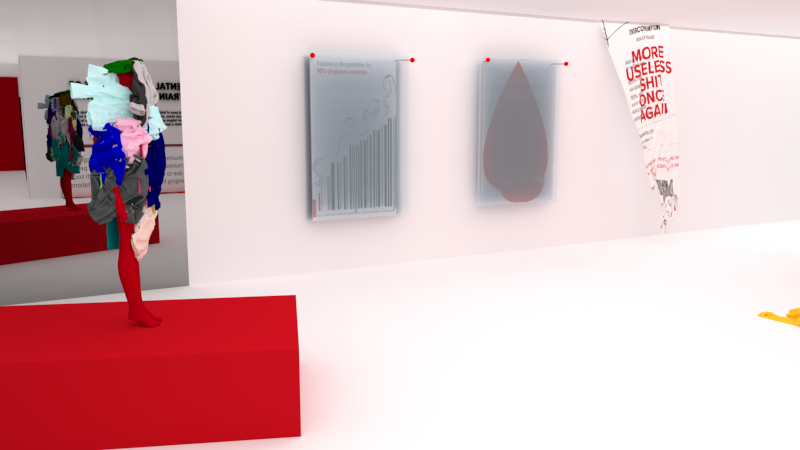Section 2 Influence Abyss A dark room with flashing screens and endless voices from TikTok, Instagram, etc. Sensory overload mirrors the pressure of constant trend exposure, highlighting how social media fuels conformity and consumption.